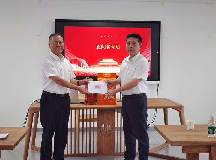 | 七月流火,黨旗飄揚。在這個充滿榮光與紀念意義的偉大日子——慶祝中國共產(chǎn)黨成立104周年,集團黨委懷著崇高的敬意與深切的關(guān)懷,組織開展了“七一”送關(guān)懷慰問活動,為集團老黨員和困難黨員送上節(jié)日的誠摯問候和溫暖的慰問品,向他們致以最崇高的敬意,讓組織的關(guān)懷如春風(fēng)化雨,滋潤心田。集團領(lǐng)導(dǎo)班子成員分別帶隊走訪慰問老黨員、困難黨員共4人。 在走訪過程中,集團領(lǐng)導(dǎo)班子成員與他們親切交談,詳細了解黨員的身體狀況、家庭生活情況和實際困難,叮囑他們要保重身體,保持積極樂觀的心態(tài),并送上慰問金和米、油物資,讓他們感受到集團黨委始終牽掛他們的生活,感謝他們?yōu)辄h的事業(yè)和集團發(fā)展作出的貢獻。