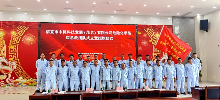 8月12日,集團(tuán)下屬企業(yè)中機(jī)科技發(fā)展(茂名)有限公司(以下簡(jiǎn)稱“中機(jī)科技公司”)舉行危險(xiǎn)化學(xué)品應(yīng)急救援隊(duì)成立暨授旗儀式。信宜市安全生產(chǎn)委員會(huì)、市應(yīng)急管理局相關(guān)領(lǐng)導(dǎo)出席儀式并為救援隊(duì)授旗。
