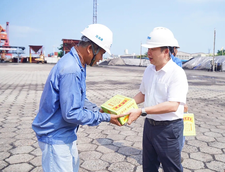 | 近日,茂名港集團工會主席馬云青率隊開展“送清涼”慰問活動。慰問組先后走訪了集團港區(qū)生活區(qū)、中油王港公司庫區(qū)、港口經(jīng)營公司碼頭作業(yè)現(xiàn)場、中機科技公司生產(chǎn)現(xiàn)場等地,為高溫下堅守崗位的一線操作職工、重點項目職工等送去清涼與關(guān)懷。集團副總裁李昱祺及相關(guān)下屬企業(yè)負責(zé)人參加活動。
