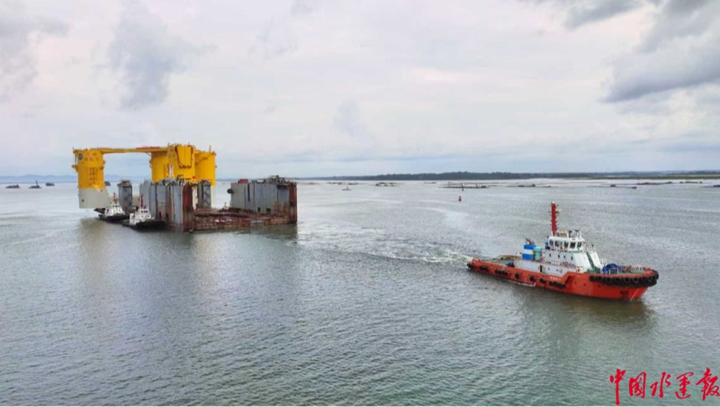 | 9月9日,全球單機容量最大的漂浮式風(fēng)電平臺“三峽領(lǐng)航號”在北海海事局“海巡10181”輪護航下,從北海鐵山港藍水碼頭拖航到北暮作業(yè)區(qū)8號泊位進行組裝。該平臺由三峽集團主導(dǎo)研發(fā),單機容量達16兆瓦,其基礎(chǔ)平臺長80.82米、寬91米、型深37米,設(shè)計吃水19米,建成后年發(fā)電量約4465萬千瓦時。